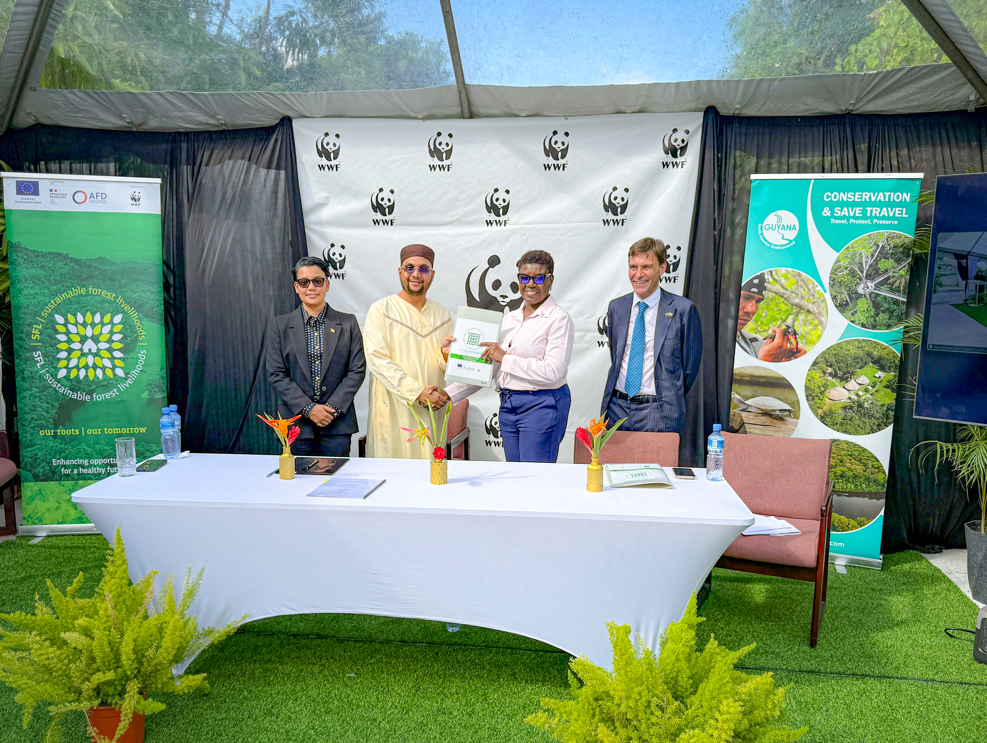 The signing ceremony, held at the WWF office in Georgetown, was graced by the Minister of Tourism, Industry & Commerce, Honourable Susan Rodrigues, the EU Ambassador Luca Pierantoni, alongside Director of the Guyana Tourism Authority, Kamrul Baksh, and the WWF Conservation Director, Ms Aiesha Williams.